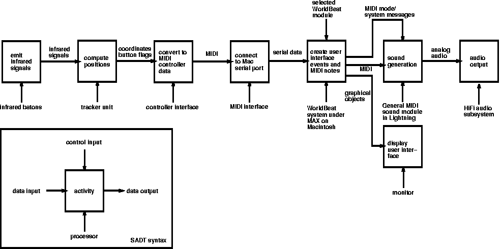 The idea to use the infrared batons as navigational devices results in the following data flow in the WorldBeat system (see Fig. 2):